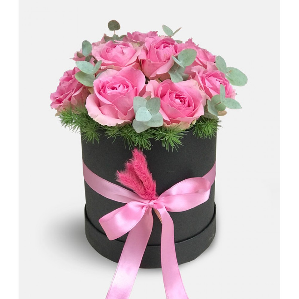 Sevginin en zarif haliyle buluştuğu bu özel çiçek aranjmanı, mekanlarınıza estetik ve zarafet katmak için tasarlandı. Siyah silindir kutusunun modern ve şık duruşu, pembe güllerin ve okaliptusların zarafetiyle birleşerek muazzam bir görsellik sunuyor. Pembe kurdele ise aranjmanın tümüne asil bir hava katıyor, sevdiklerinize anlam dolu bir hediye seçeneği sunuyor. Hem şıklığı hem de doğallığı bir arada barındıran bu eşsiz aranjman, sevdiklerinizin kalbini kazanacak. Siparişiniz sonrasında çıkacak “Not oluşturma” sayfasında birkaç cümlelik not oluşturarak hediyenizi daha anlamlı bir hale getirmeyi unutmayın.