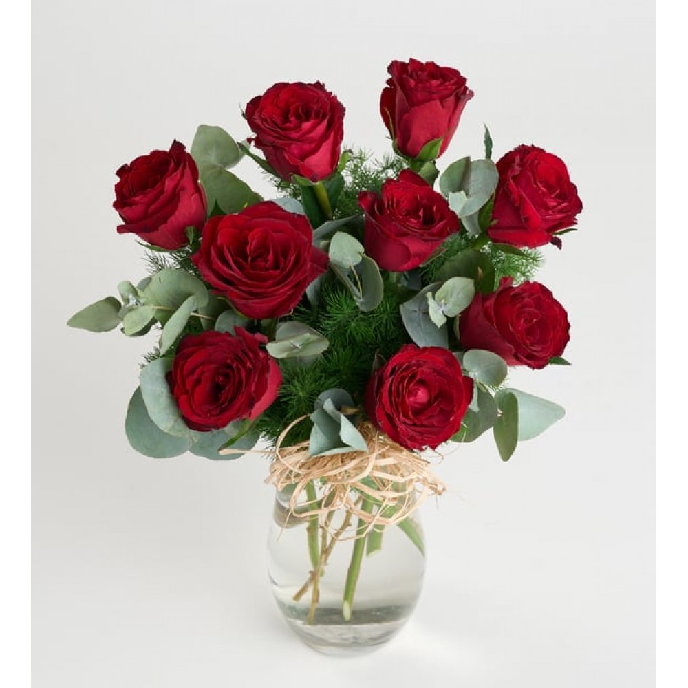 Silindir Cam Vazoda 9 Kırmızı Gül