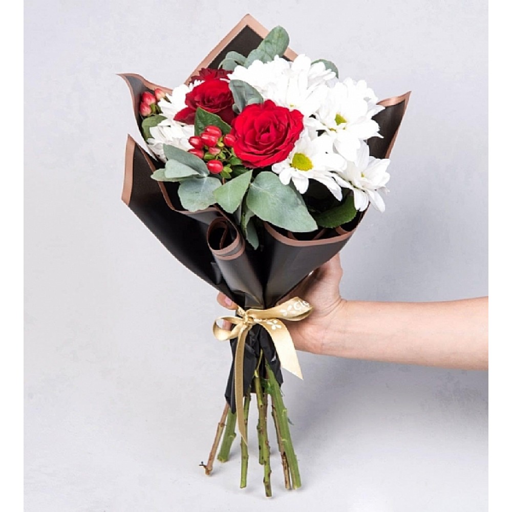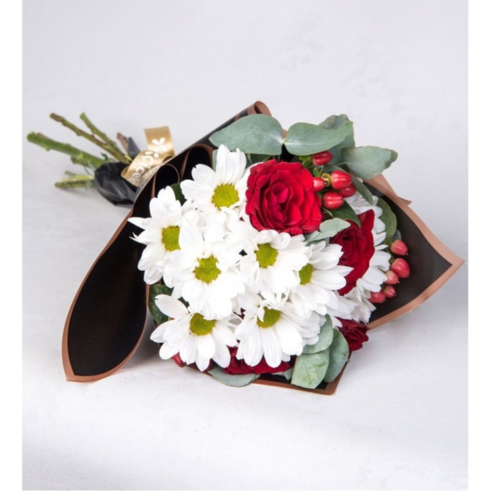 Beyaz Papatyalar ve Kırmızı Güller Çiçek Buketi