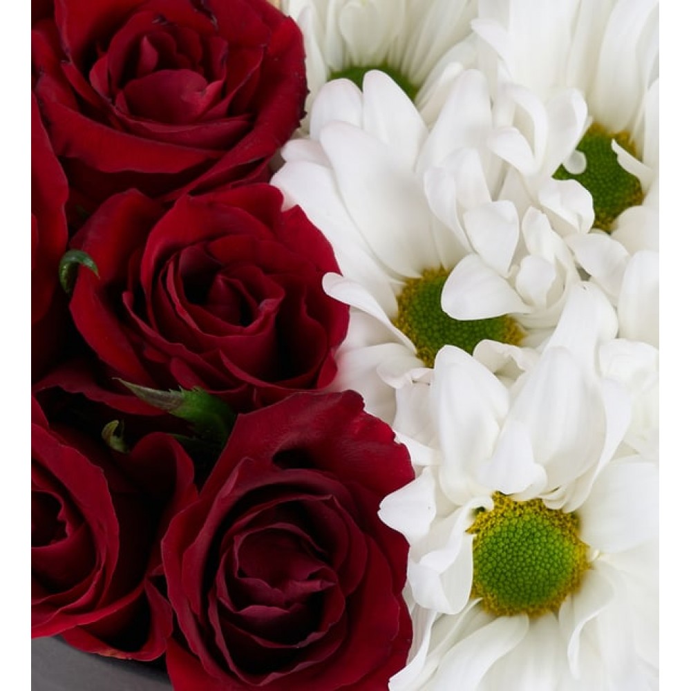 Siyah Kutuda Kırmızı Güller ve Beyaz Papatyalar