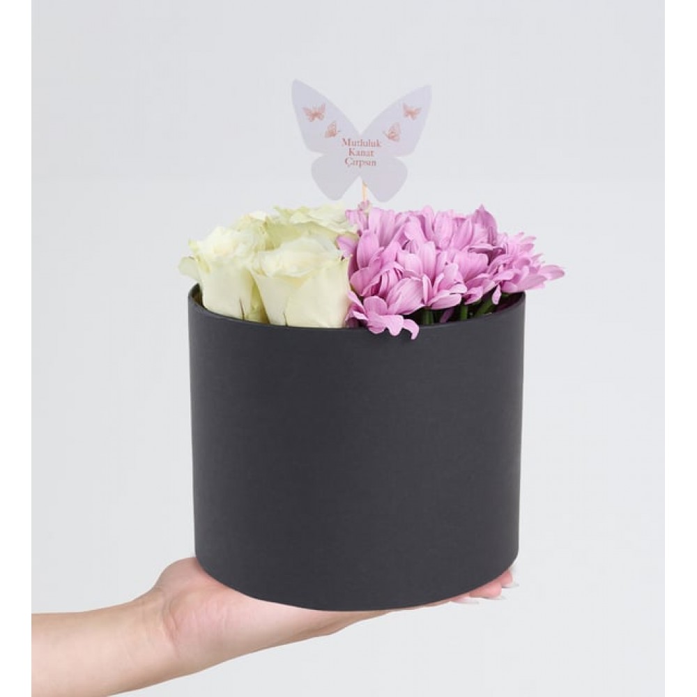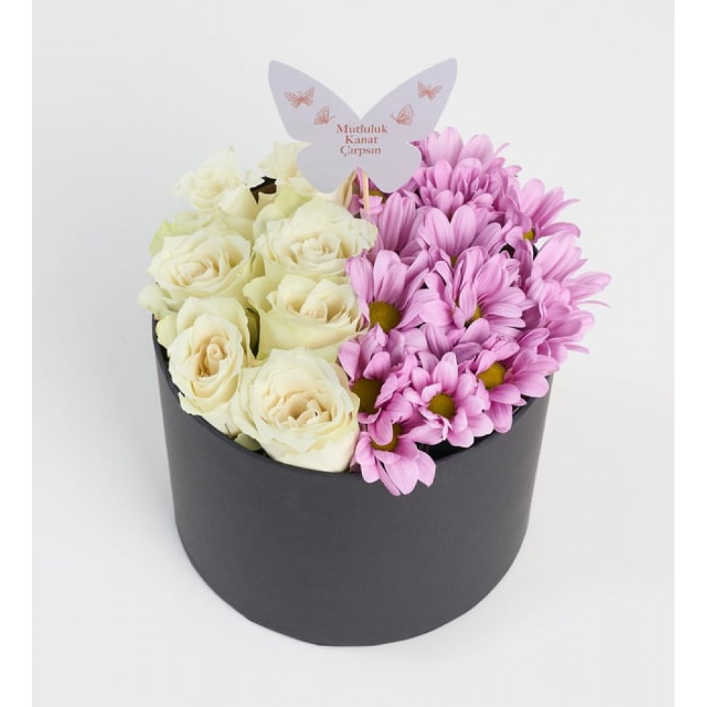 Siyah Kutuda Beyaz Güller ve Pembe Papatyalar
