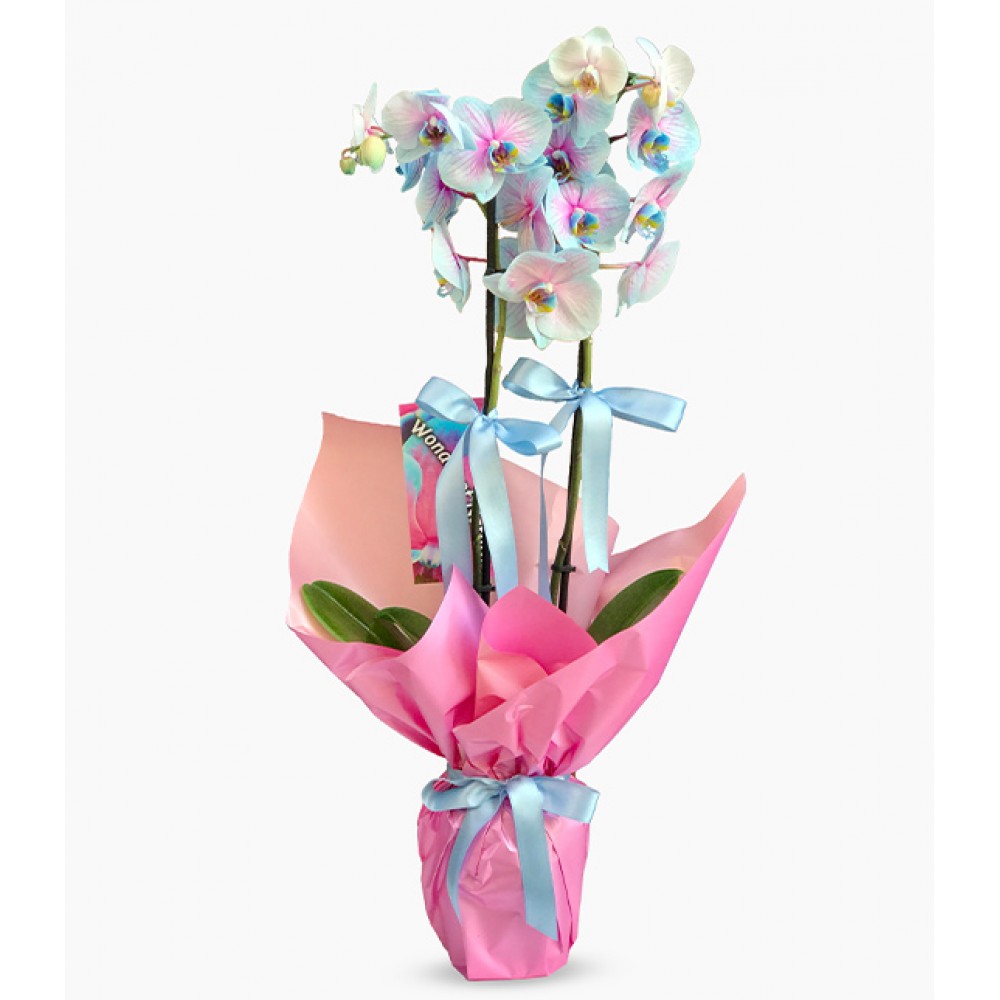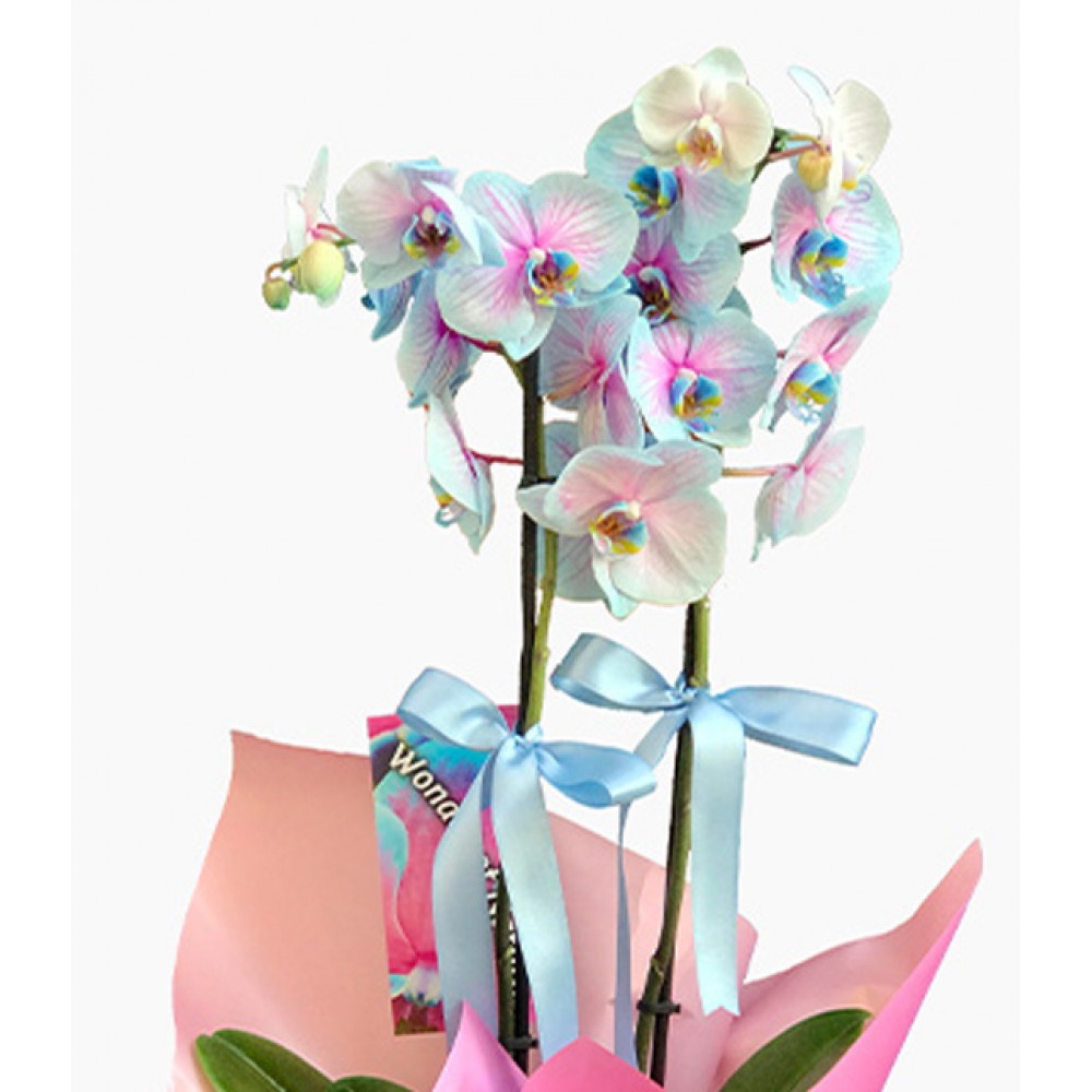2 Dallı Pembe-Mavi renklerde alacalı mavi orkide çiçeği