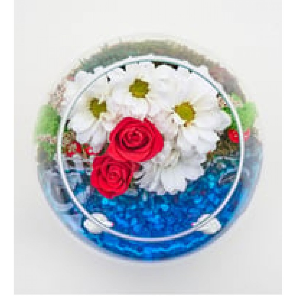 Cam Fanusta Kırmızı Gül ve Beyaz Papatya Teraryum