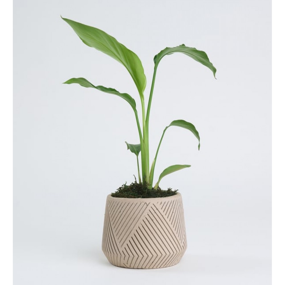 Ürün İsmi: Geometrik Çizgi Desenli Saksıda Starliçe Bitkisi