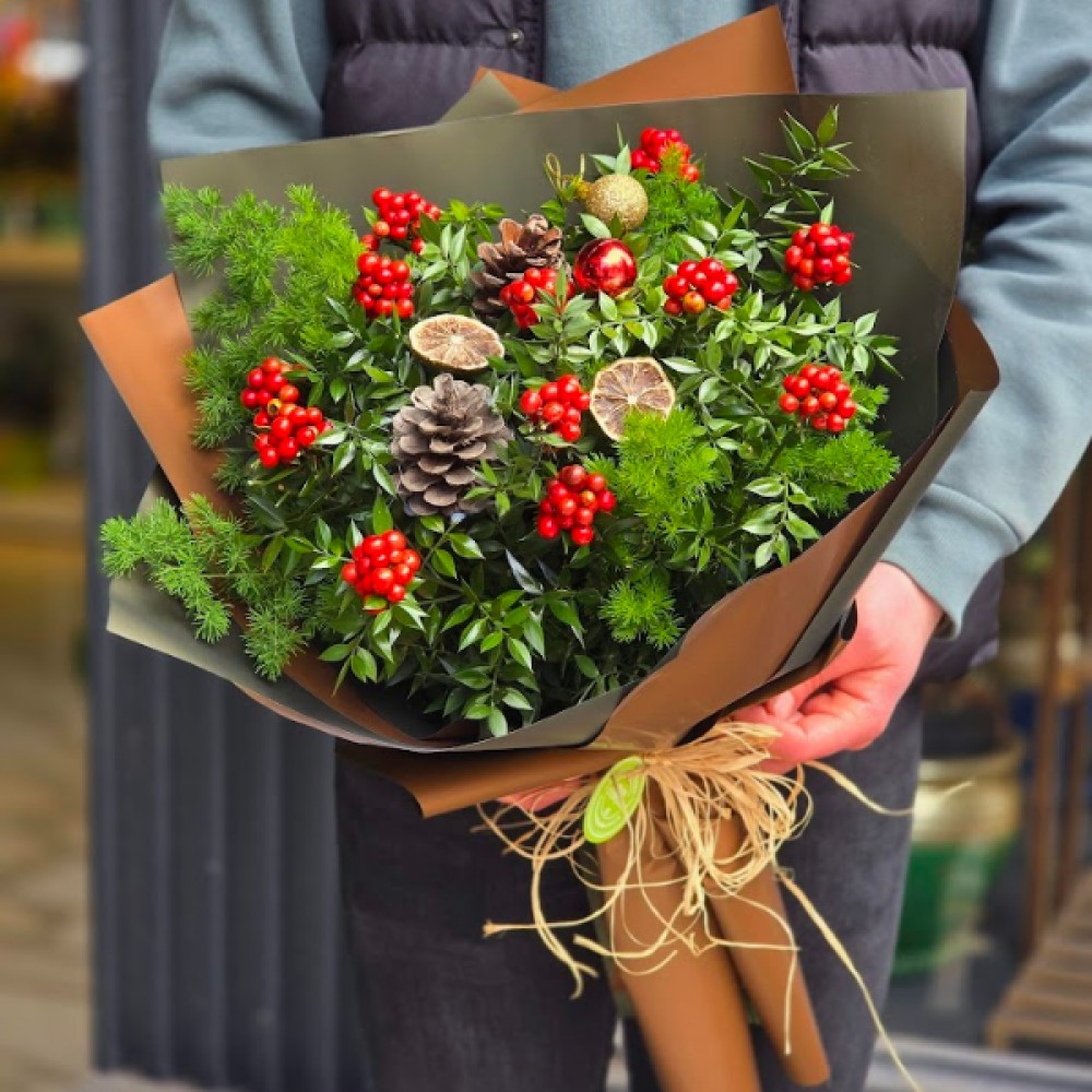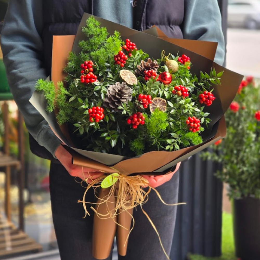 Yeni yılın tazelik ve umut dolu atmosferini yansıtan bu özel aranjman, sevdikleriniz için unutulmaz bir hediye seçeneğidir. Kokinanın parlak kırmızı tonları, doğal kraft buket kağıdı ile mükemmel bir uyum içinde sunulurken, yılbaşı ruhunu yansıtan tarçın çubukları ve kurutulmuş limon dilimleri tasarımı zenginleştiriyor. Okaliptus dalları ve cipso çiçeklerinin kattığı zarif detaylar, buketi yalnızca görsel olarak değil, duyusal olarak da etkileyici bir hale getiriyor. Şık kırmızı kurdele ve burlap ip ile bağlanan bu aranjman, doğal bir estetik sunarken, sevdiklerinize sıcak bir "Yeni Yılınız Kutlu Olsun!" mesajını iletmenizi sağlar. Sıradan bir günü yılbaşı coşkusuyla özel kılmak veya özel anlarınızı taçlandırmak için sipariş edebilirsiniz. Siparişiniz sonrasında çıkacak “Not oluşturma” sayfasında birkaç cümlelik not oluşturarak hediyenizi daha anlamlı bir hale getirmeyi unutmayın.